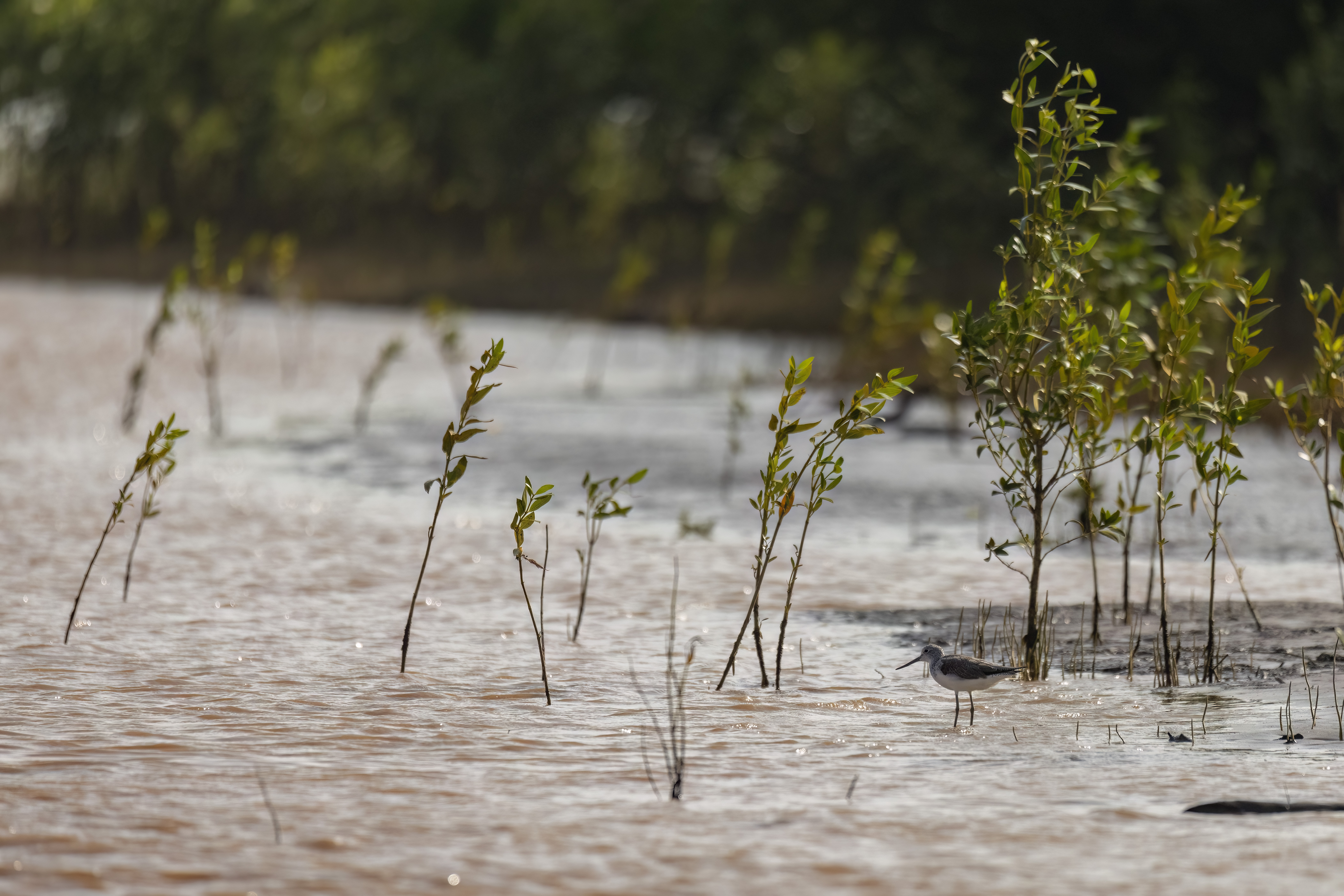 They were likely silver-lined mudskippers (Periophthalmus argentilineatus), which can reach up to 20 cm, though the ones I saw were much smaller. Still, they were captivating. They bustled among countless small fiddler crabs, each waving its oversized claw in slow circles until a rival appeared — endlessly entertaining to watch.