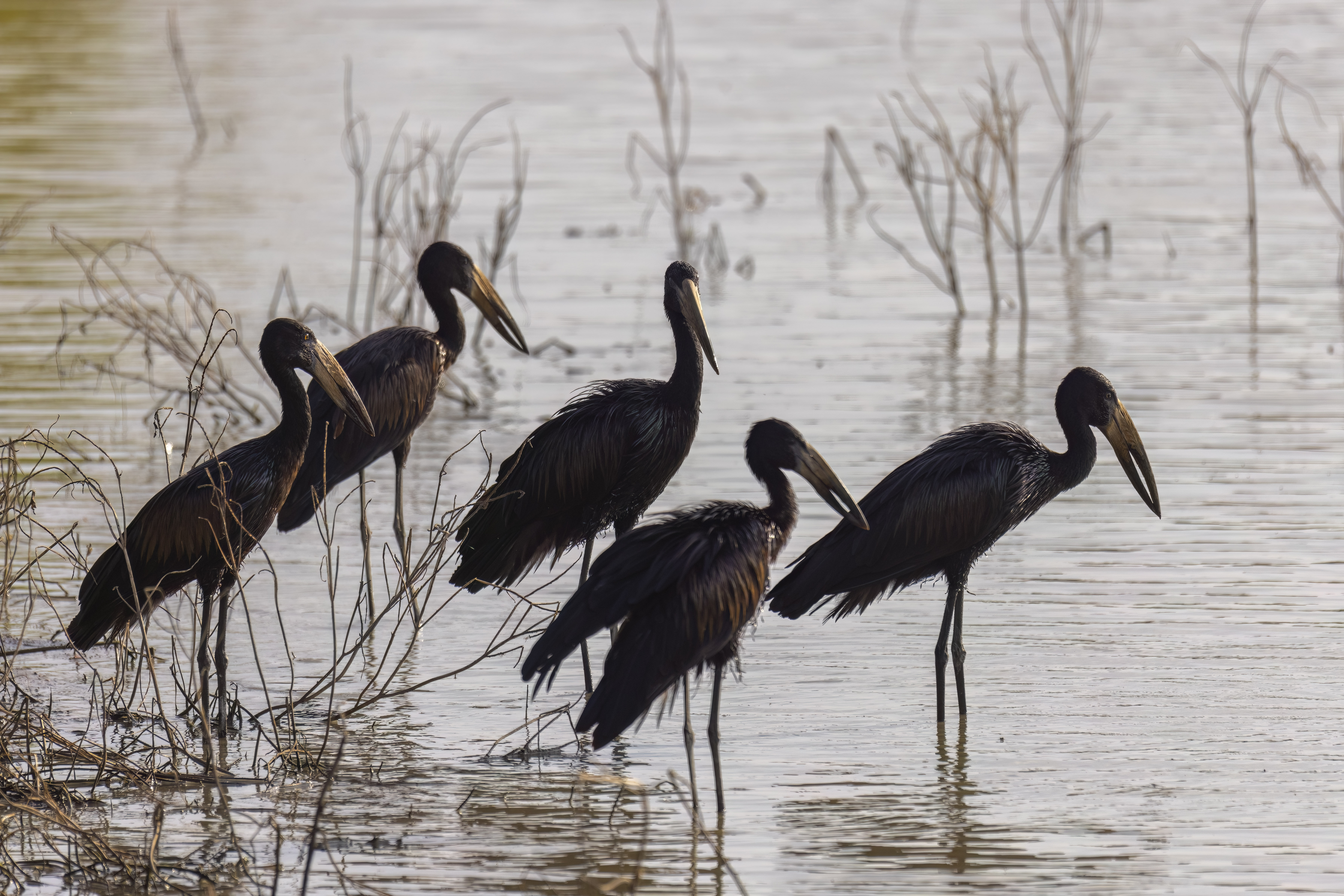 That day, many routes were inaccessible due to flooding. The main road was washed out, and side tracks were impassable. We couldn’t reach the wild dogs — but there was plenty else to see. Frogs thronged the flooded plains, shrieking and leaping. Fish washed out of ponds now flopped helplessly in puddles, attracting herons and storks of every kind.