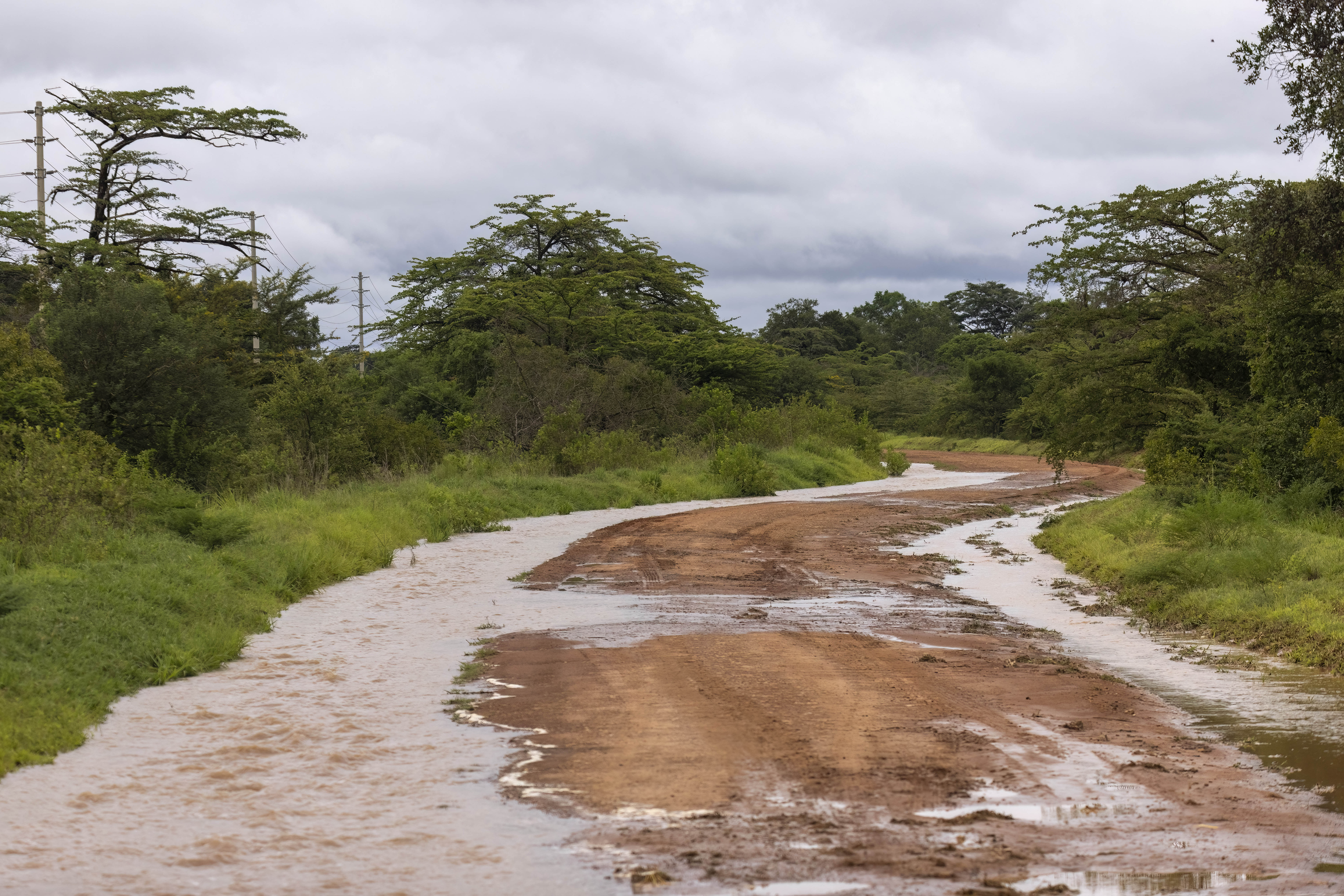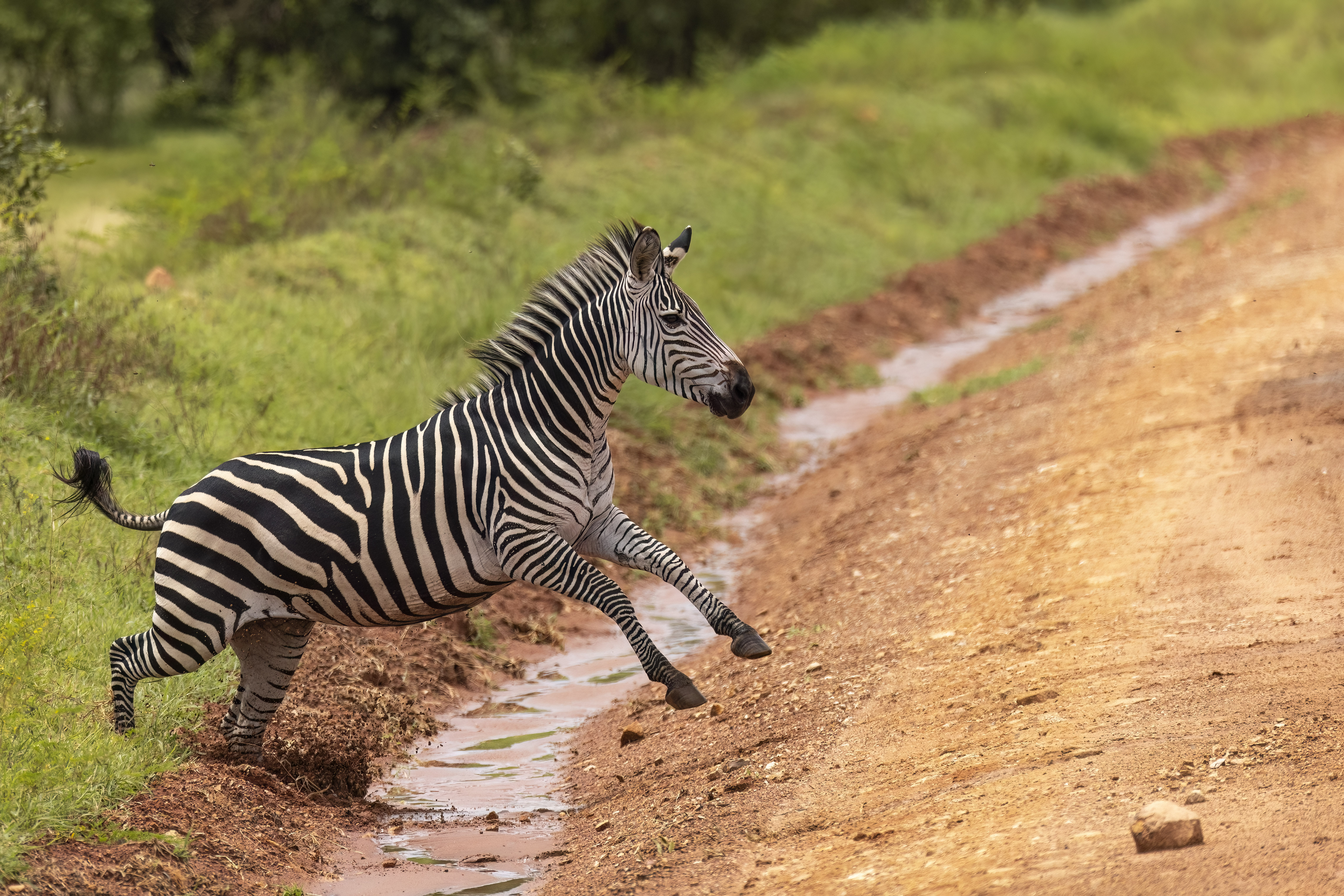 We ventured deeper into the park, but even elevated tracks were flooded. The main road turned to mush, sometimes into a stream. Predators dislike such footing — especially wild dogs, who hate mud clinging to their paw pads. Birds, reptiles, and large herbivores, however, seemed unbothered.