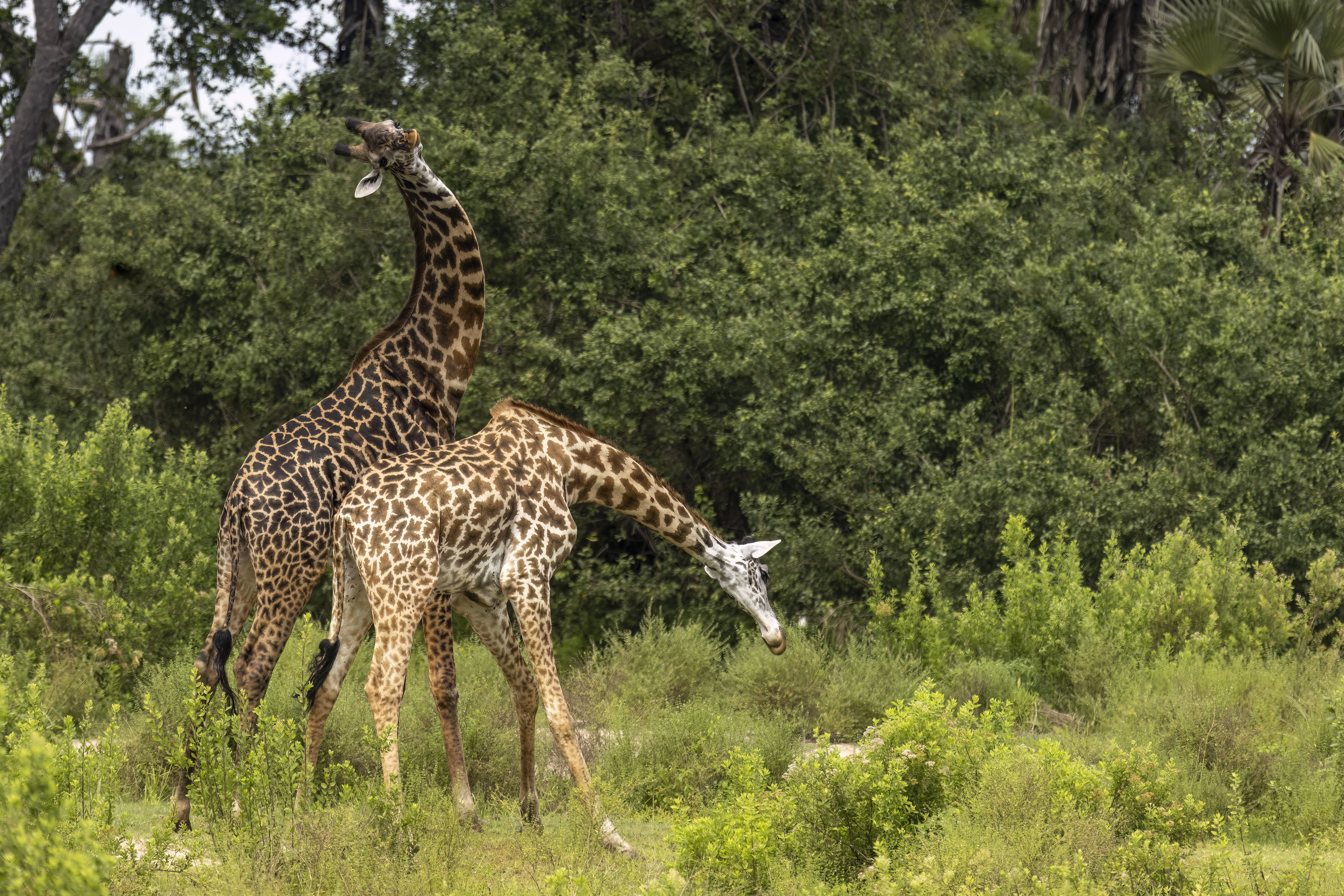 Tanzania has only one giraffe subspecies — Giraffa camelopardalis tippelskirchi, the Masai giraffe. It’s the largest subspecies, distinguished by multi-rayed patches. Ever since I was little and leafed through "The Life of Animals", I always singled out the Masai giraffe in those plates, with its beautiful, unique pattern — like snowflakes or stylized flowers on the hide.